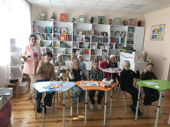 Теплий та натхненний захід із базової психосоціальної підтримки з елементами творчості «Моє безпечне місце: як подбати про себе» відбувся у Березнівській бібліотеці для дітей. Діти створювали свої символічні «безпечні місця» через творчість — виготовляли яскраві пасхальні дерева, прикрашаючи їх власноруч розписаними елементами. Кожна робота стала відображенням тепла, надії та індивідуального відчуття безпеки.