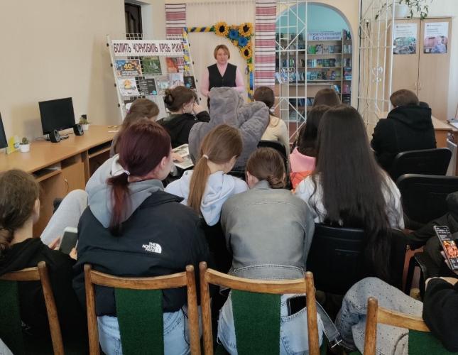 На перегляд фільму «Чорнобиль – Хроніка важких тижнів» запросила публічна бібліотека с.Моквин, година жалоби «Чорнобиль - довгий слід трагедії» пройшла у Голубнівській книгозбірні.